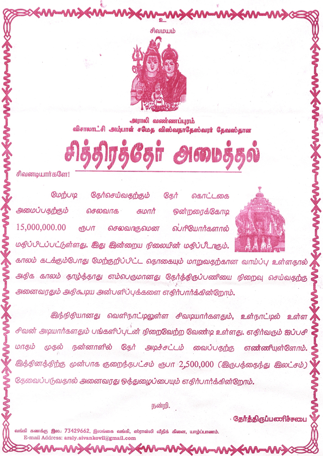 அராலி – வண்ணப்புரம் விசாலாட்சி அம்பாள் சமேத விஸ்வநாதேஸ்வரர் ஆலயம் பரிபாலனசபை வரவு செலவு அறிக்கை 01.04.2021 – 31.05.2025  : Click Here >